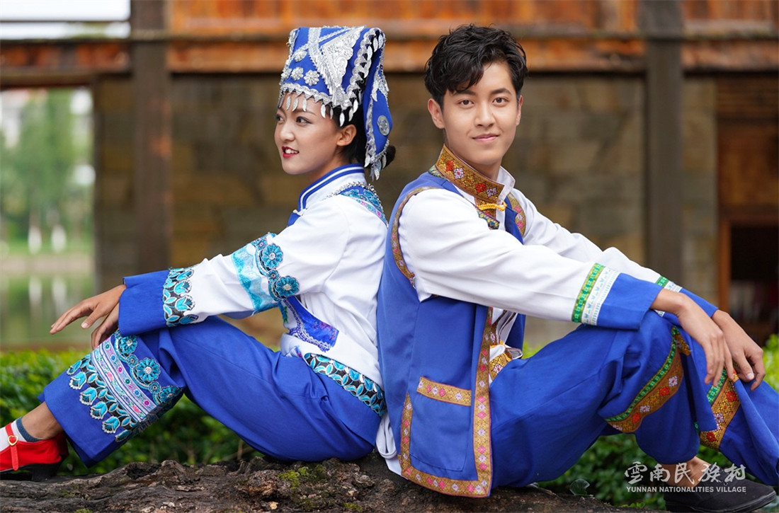 彝族在云南境內(nèi)約471萬人,是省內(nèi)人口最多、分布最廣的少數(shù)民族,主要聚居在金沙江、元江流域和哀牢山、無量山腹地。彝族是一個(gè)能歌善舞的民族,民間打歌、跳樂之風(fēng)盛行,大三弦、跌腳舞久負(fù)盛名?;鸢压?jié)是彝族最具特色的民族節(jié)日。彝族村占地50余畝,三虎浮雕墻與虎頭內(nèi)祖師形象表現(xiàn)了彝族虎鷹文化。太陽歷廣場(chǎng)圖騰柱上有太陽、虎、火和八卦圖形象,周圍環(huán)繞著10個(gè)朝向不同的月球造型,外圓周有12生肖石雕。依山而建的“...